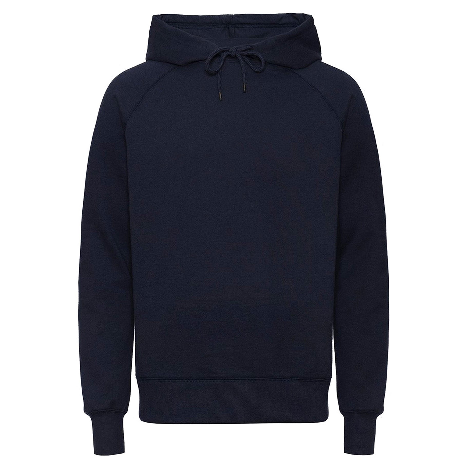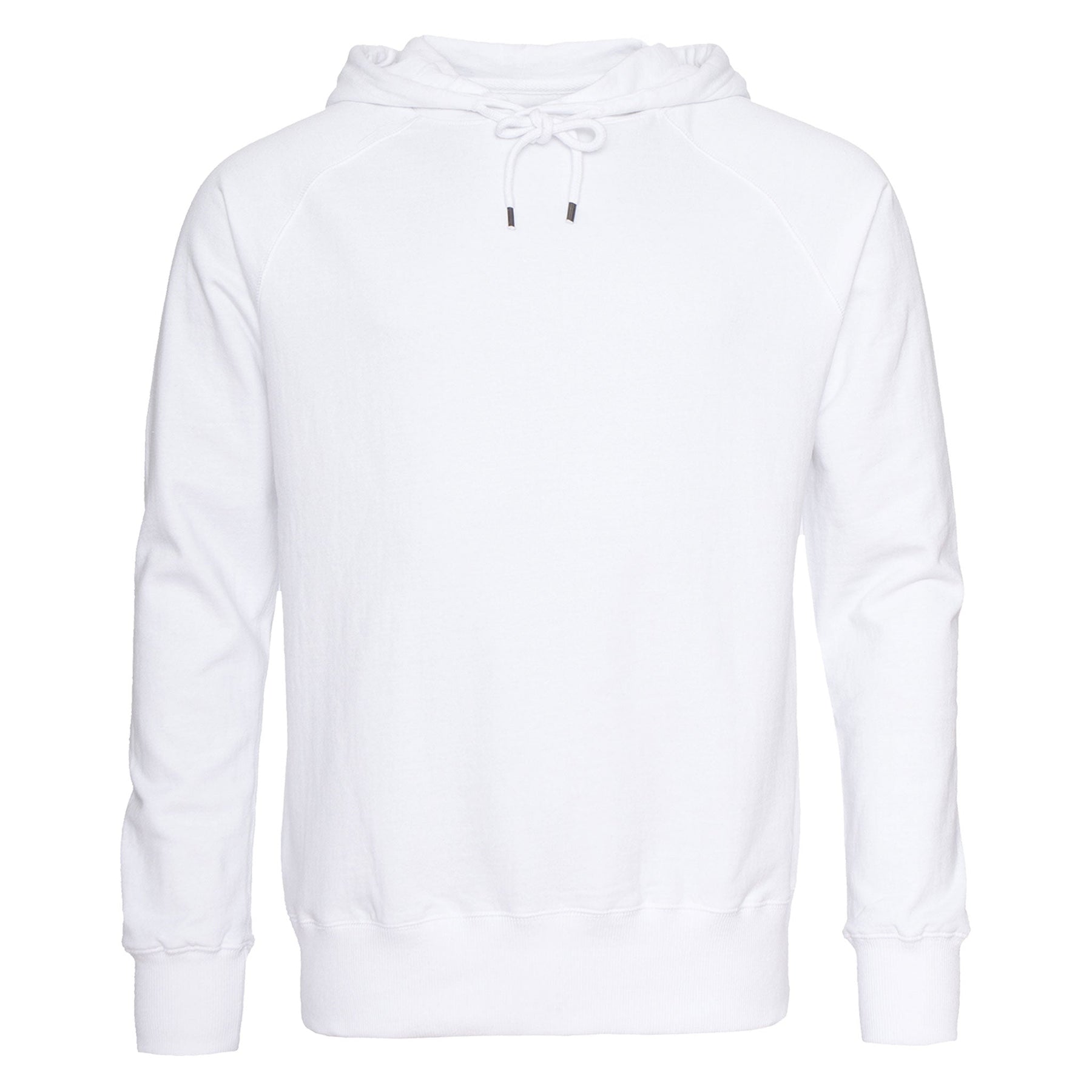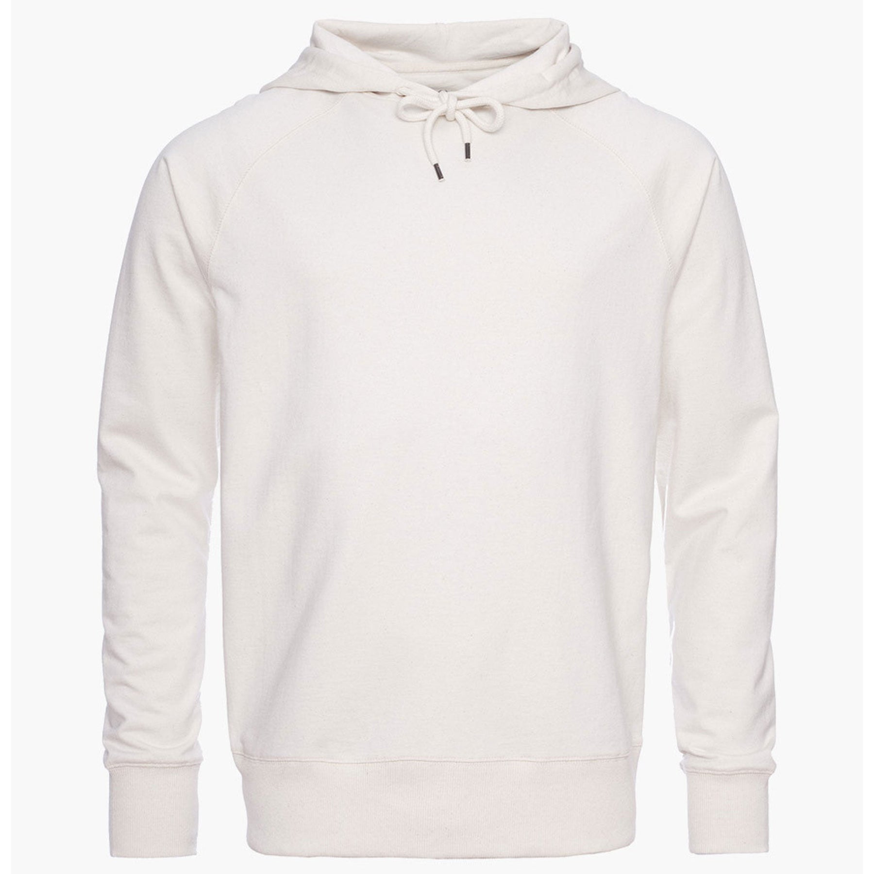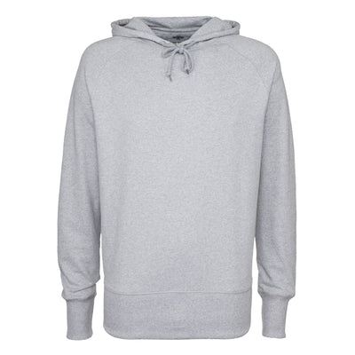 The generously sized hood has drawstrings, which are made from excess knitting machine yarns to reduce waste. The hem and sleeve openings are ribbed.