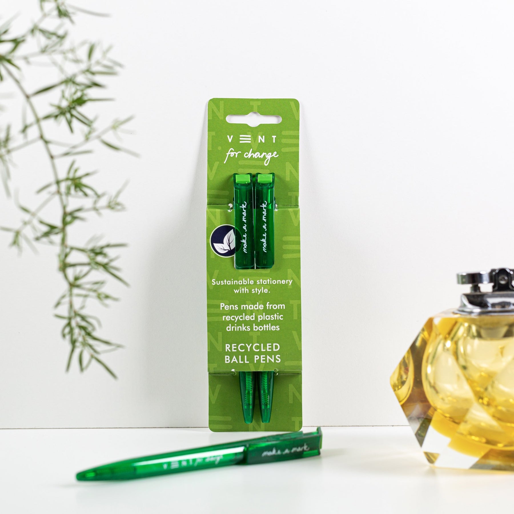 Recycled Drinks Bottle Pens - Green Grab & Go Vent For Change