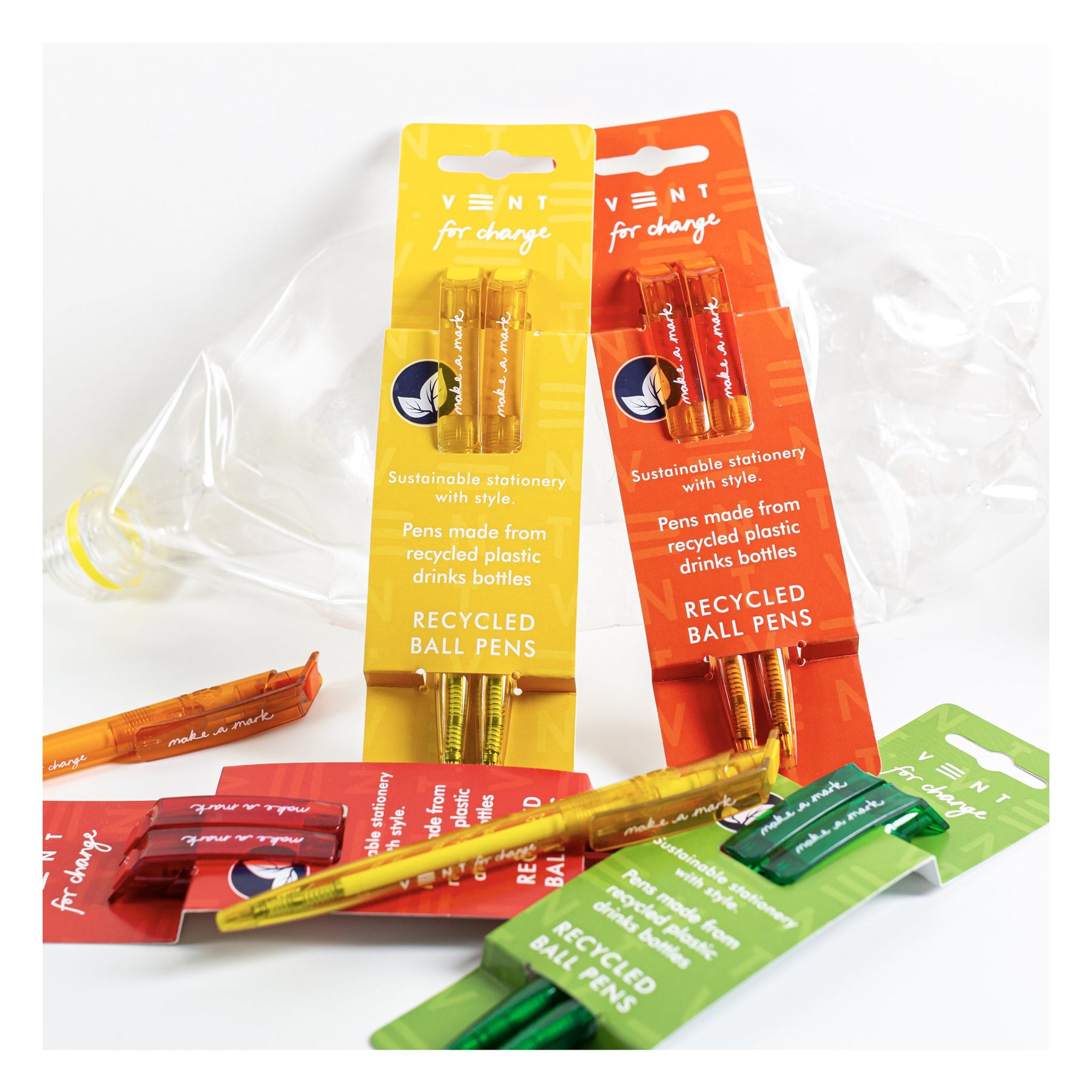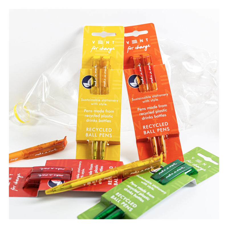 Pack of 2 recycled pens made from recycled drinks bottles.