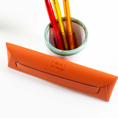 The perfect gift for a friend a stylish hand made recycled leather pen / pencil pouch. Every VENT pouch sold helps support children’s education projects worldwide.