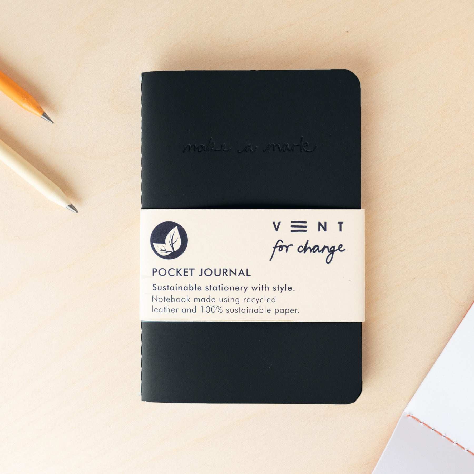 Recycled Leather A6 Pocket Journal – Black Grab & Go Vent For Change