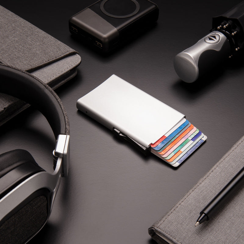 This solid aluminium cardholder is the ideal way to carry and protect your personal cards: credit cards, driver's license, debit cards and other cards.
