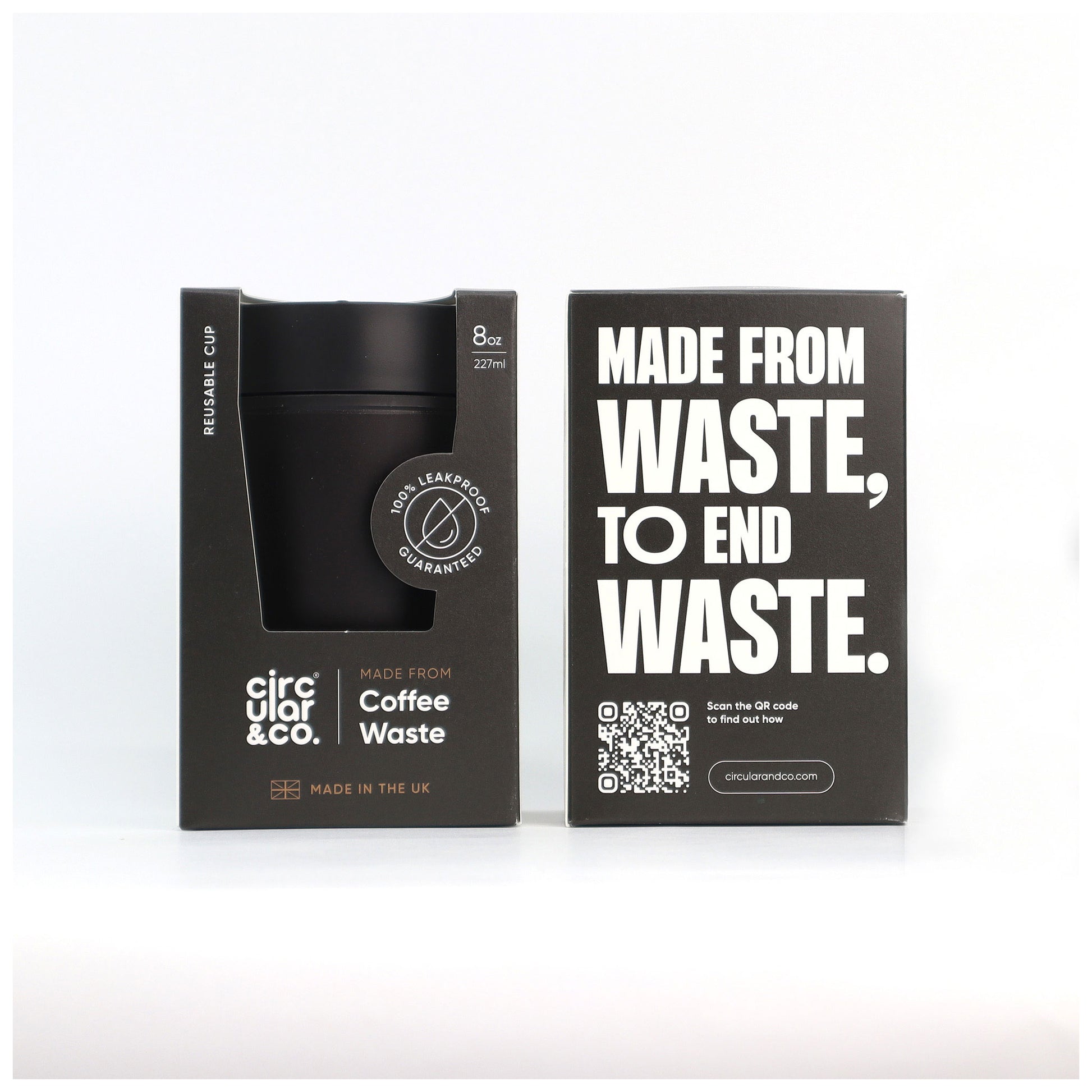 - Circular & Co. 8oz Coffee Waste Cup: Made in the UK using recycled coffee waste, this cup combines award-winning functionality with next-generation sustainable design. The outer layer is crafted from post-consumer coffee waste and recycled plastic, and features a 100% leakproof Trust-Lock™ lid with a twist-to-lock design.